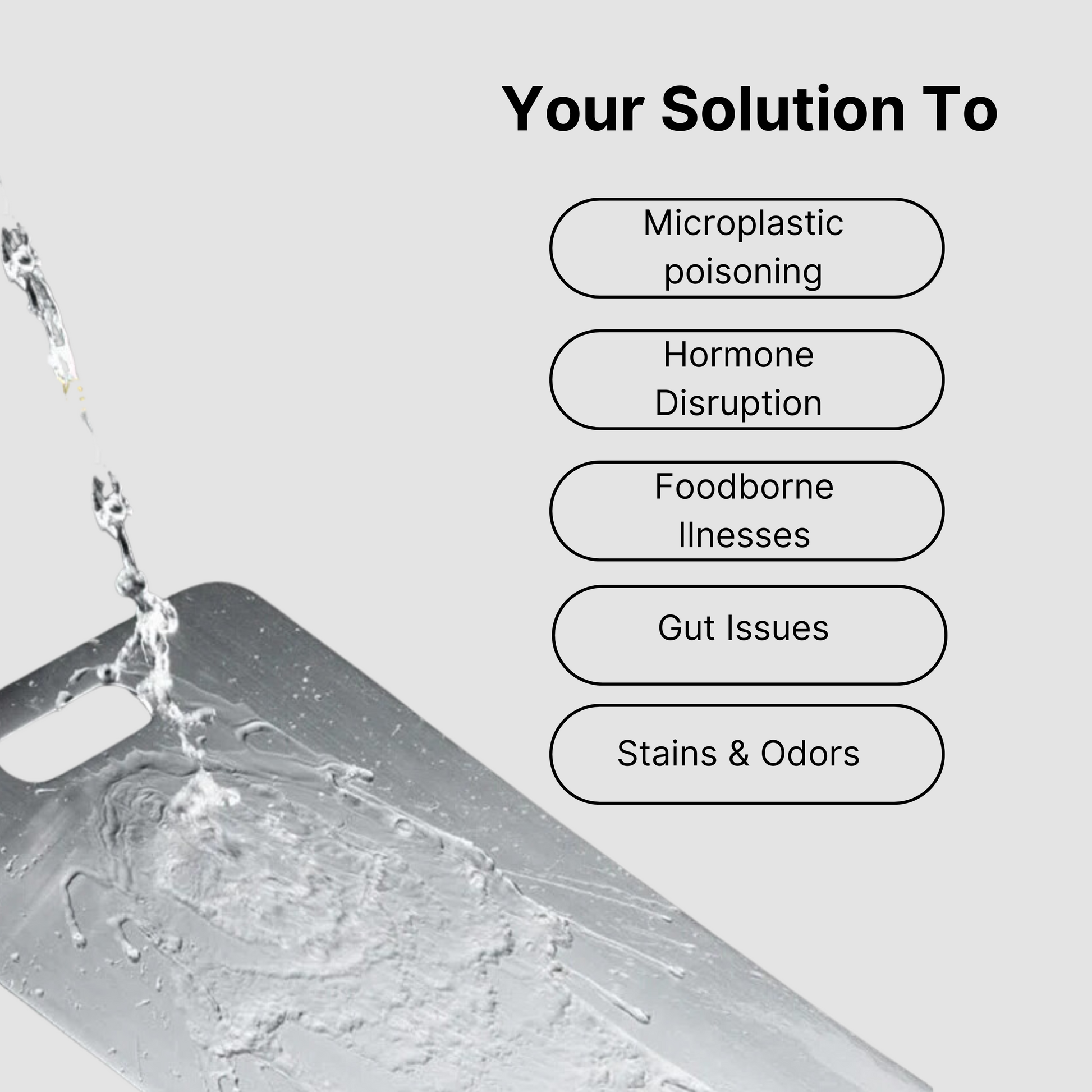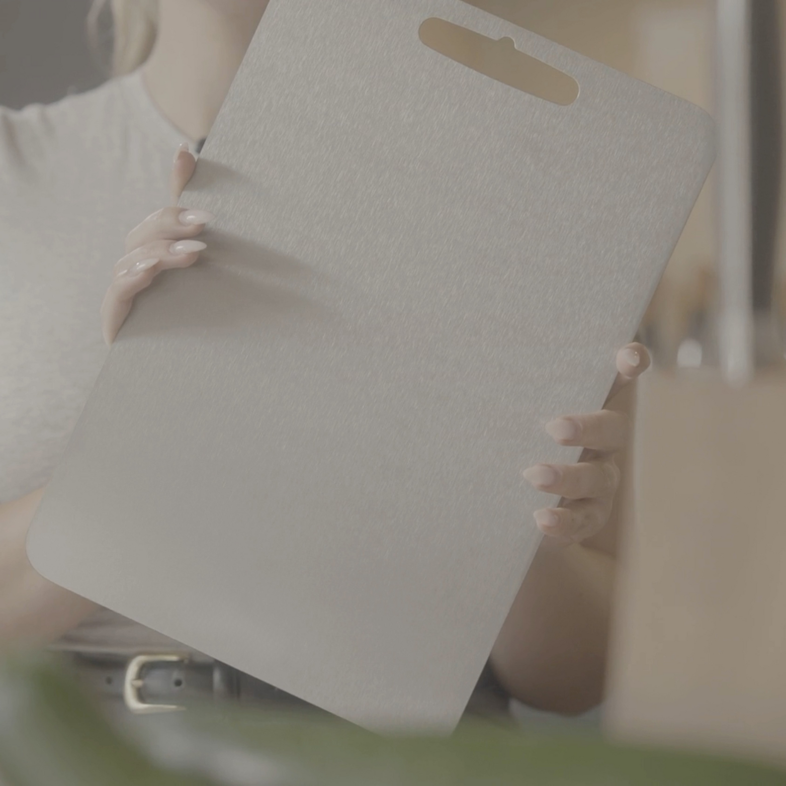 Precision-crafted from 100% pure titanium, this cutting board offers a non-porous, hygienic surface that won’t absorb bacteria, stains, or odours. Naturally antibacterial and free from chemical coatings, it preserves the integrity of ingredients while remaining gentle on knives. Designed for everyday use, it’s a sleek, long-lasting alternative to traditional wood or plastic boards.